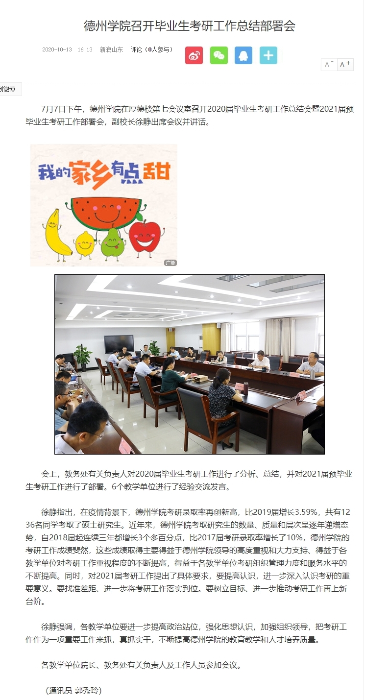 【新浪网】bat365在线唯一官网登录召开毕业生考研工作总结部署会