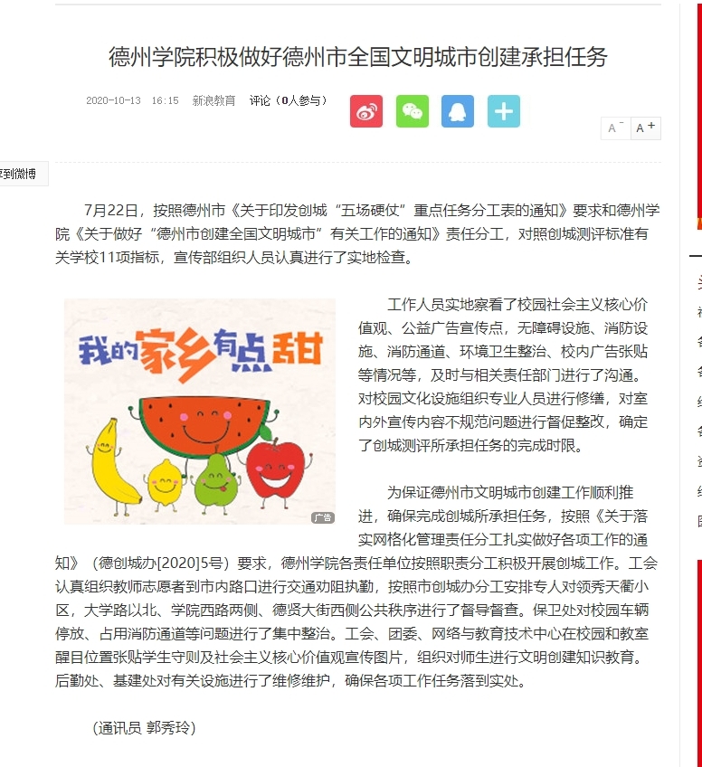 【新浪网】bat365在线唯一官网登录积极做好德州市全国文明城市创建承担任务