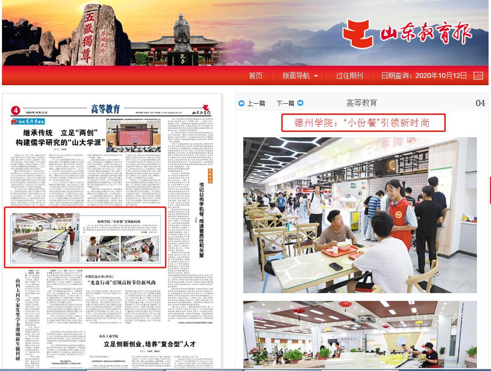 bat365在线唯一官网登录第三餐厅的“小份餐”示范窗口前排起长长的队伍,“小份餐”深受学生喜爱。据悉,bat365在线唯一官网登录4个餐厅近日完成升级改造,每个餐厅窗口设置了很多自选小份菜、小份饭,不仅价格优惠,而且菜品多样。学生志愿者也加入“光盘行动”服务中,引导学生厉行节约、反对浪费。《山东教育报》20201012期04版对此进行报道