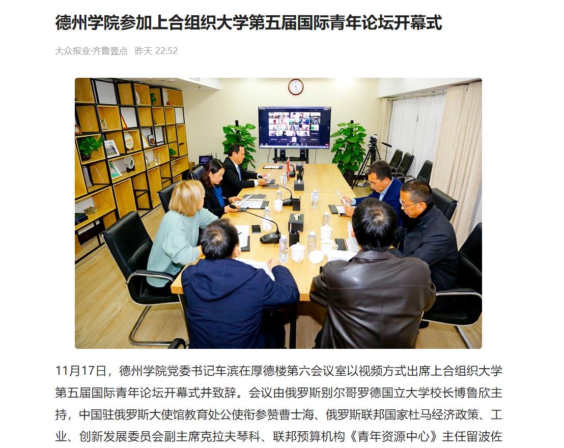 【齐鲁晚报·齐鲁壹点】bat365在线唯一官网登录参加上合组织大学第五届国际青年论坛开幕式