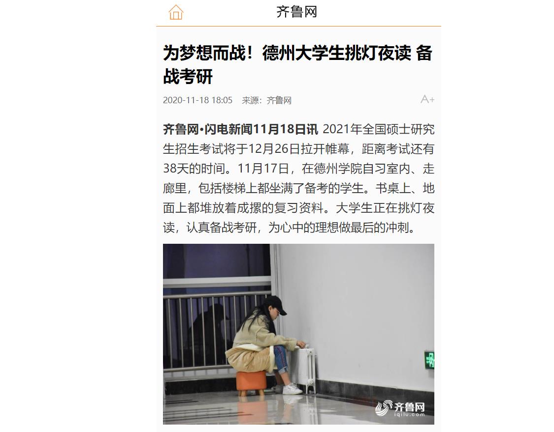 【齐鲁网、闪电新闻、德州日报、德州市广播电视台】为梦想而战!德州大学生挑灯夜读 备战考研