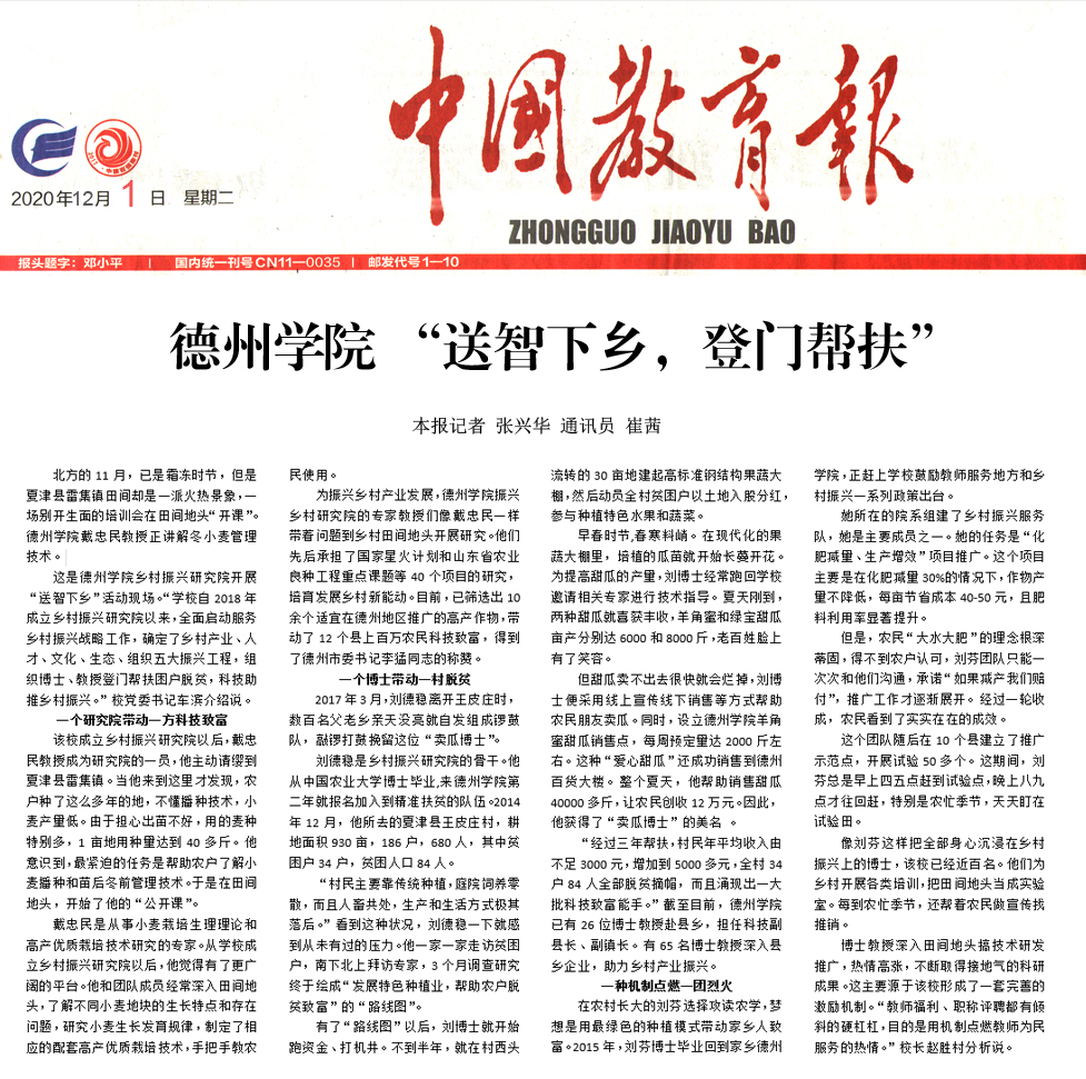 为振兴乡村产业发展,bat365在线唯一官网登录振兴乡村研究院的专家教授们像戴忠民一样带着问题到乡村田间地头开展研究。他们先后承担了国家“星火计划”和山东省农业良种工程重点课题等40个项目的研究,培育发展乡村新动能。目前,已筛选出10余个适宜在德州地区推广的高产作物,带动了12个县上百万农民科技致富,得到了德州市委书记李猛同志的称赞。