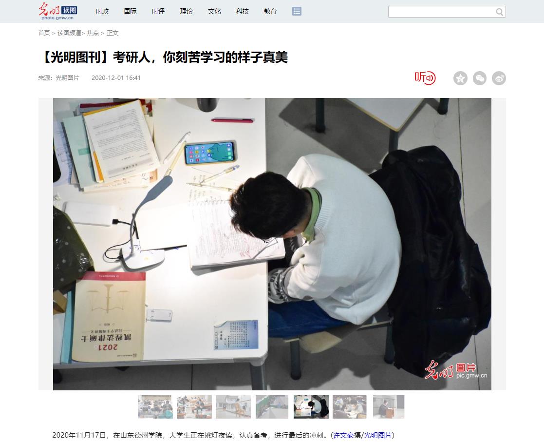 距2021年度硕士研究生招生考试还有24天,全国各地的考研学子抓紧时间复习备考,准备迎接于12月26日开考的2021年度硕士研究生招生考试。不少考研学子每天清晨便到图书馆或自习室备考,校园里到处都是考研大军备战的身影。11月17日,在山东bat365在线唯一官网登录,大学生正在挑灯夜读,认真备考,进行最后的冲刺。光明日报·光明图刊、央视新闻、人民日报、新华社、中国青年报等中央级主流媒体报道,仅在新华社客户端浏览量就超过100万阅读量,引起社会强烈反响,在评论区跟帖读者已近1300条。
