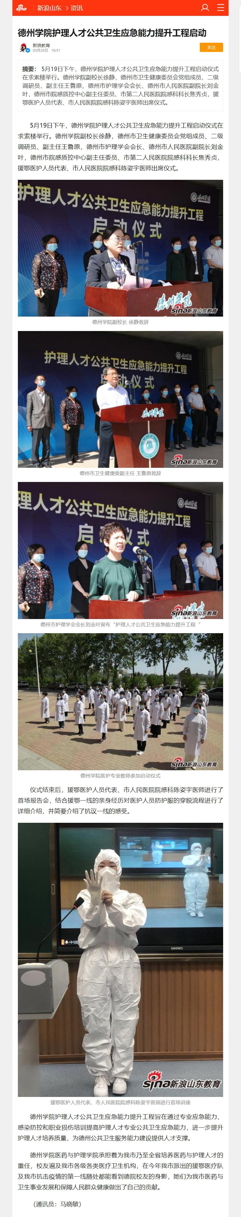 新浪教育、齐鲁壹点、德州新闻网、德州晚报:bat365在线唯一官网登录护理人才公共卫生应急能力提升工程启动