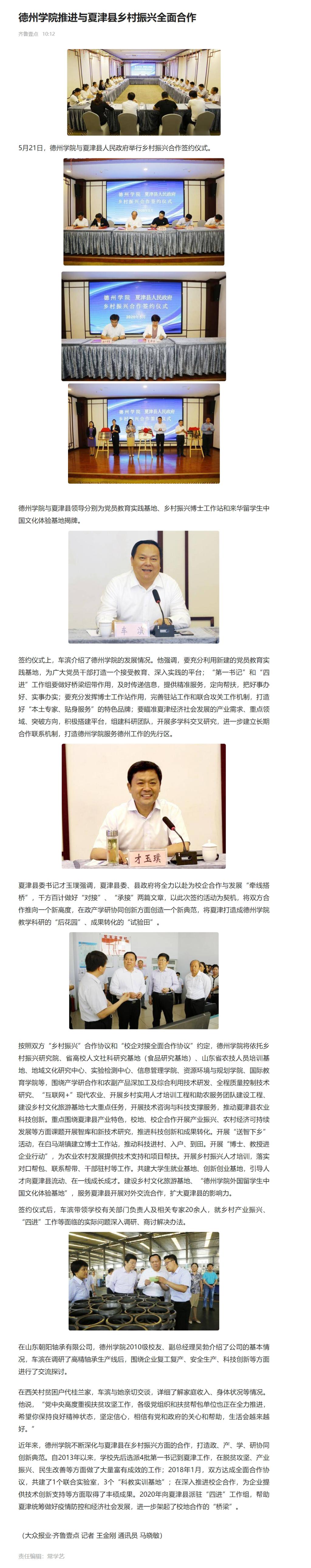 【齐鲁壹点 山东商报 德州晚报】bat365在线唯一官网登录推进与夏津县乡村振兴全面合作