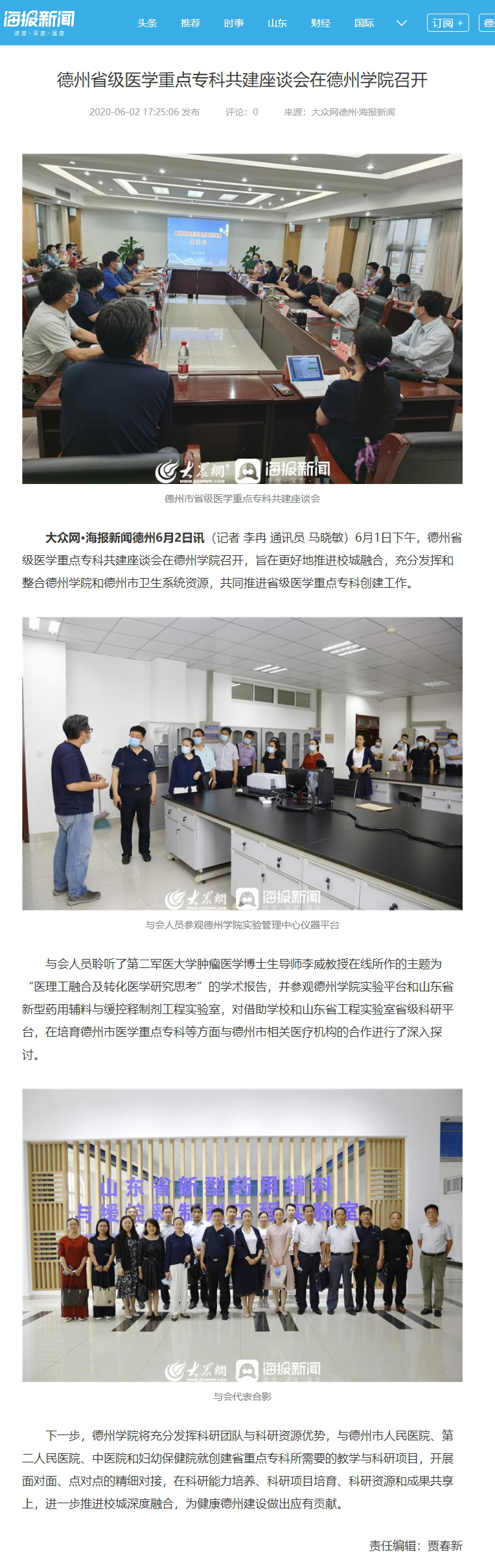 【大众网、德州24小时】德州省级医学重点专科共建座谈会在bat365在线唯一官网登录召开