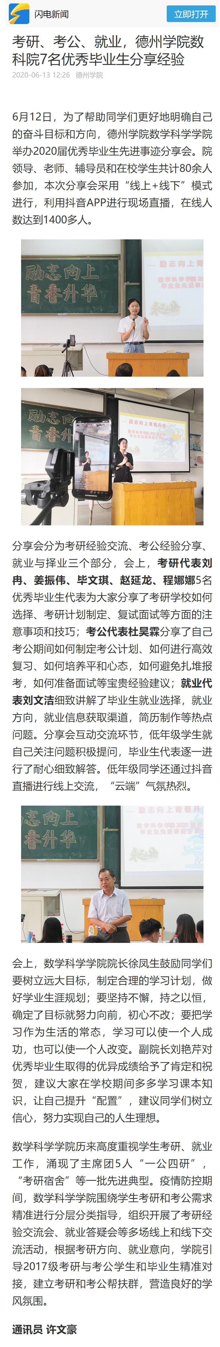 【齐鲁网、闪电新闻】考研、考公、就业,bat365在线唯一官网登录数科院7名优秀毕业生分享经验