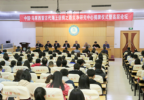 图为中国-马来西亚古代海上丝绸之路义净研究中心揭牌仪式暨高层论坛现场。