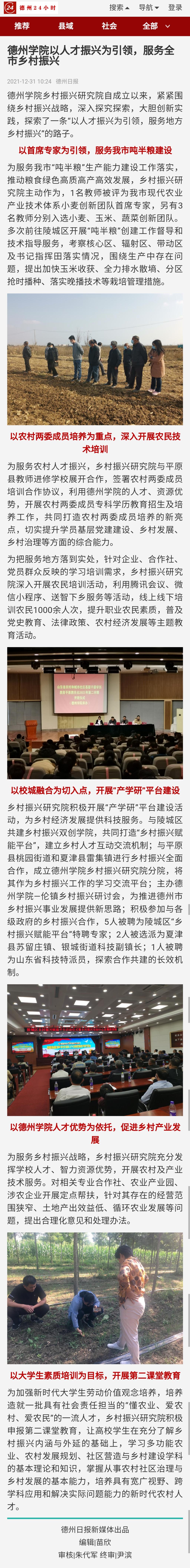 【德州日报】bat365在线唯一官网登录以人才振兴为引领,服务全市乡村振兴