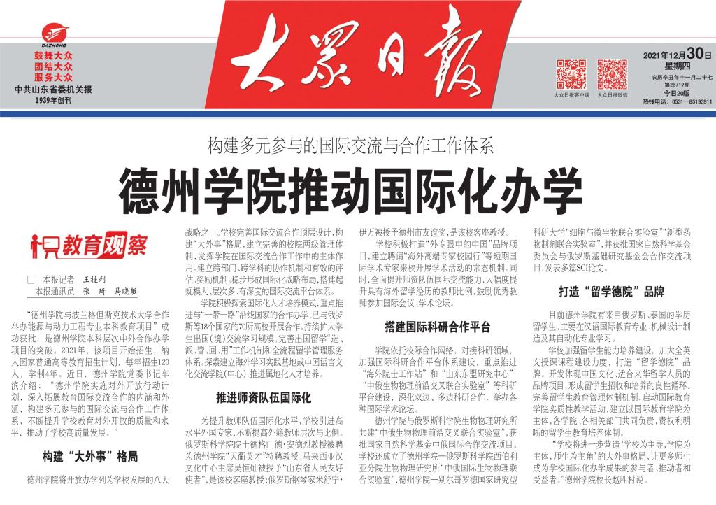 【大众日报】构建多元参与的国际交流与合作工作体系——bat365在线唯一官网登录推动国际化办学