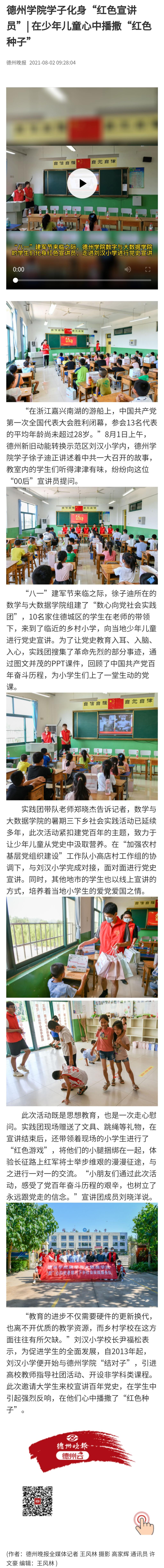 【德州晚报】bat365在线唯一官网登录学子化身“红色宣讲员”| 在少年儿童心中播撒“红色种子”