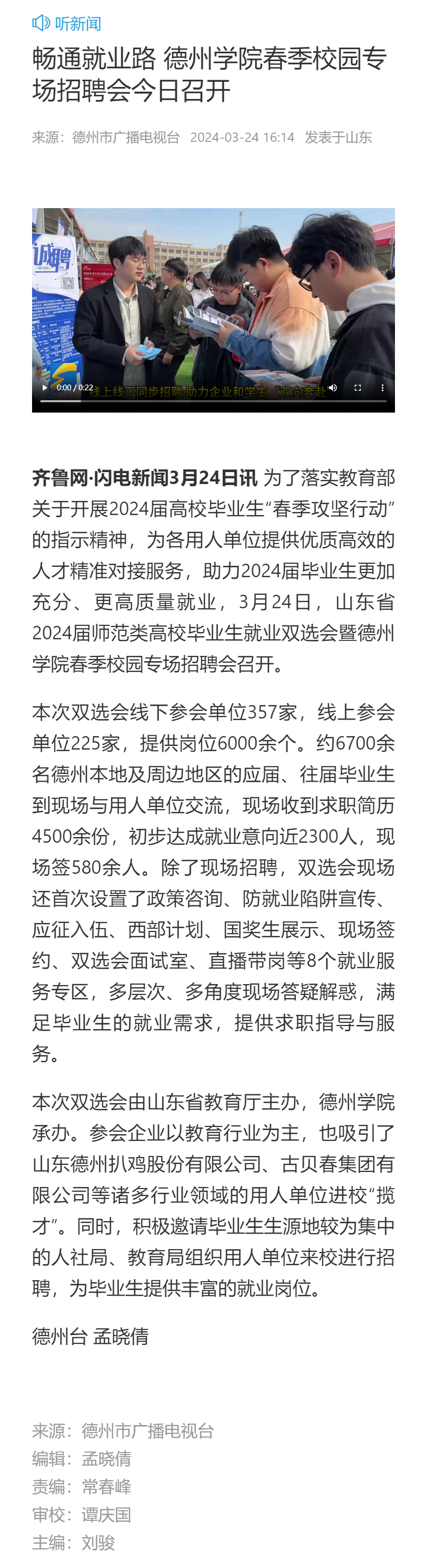 【中国教育在线 德州日报 闪电新闻 今日头条】畅通就业路 bat365在线唯一官网登录春季校园专场招聘会今日召开