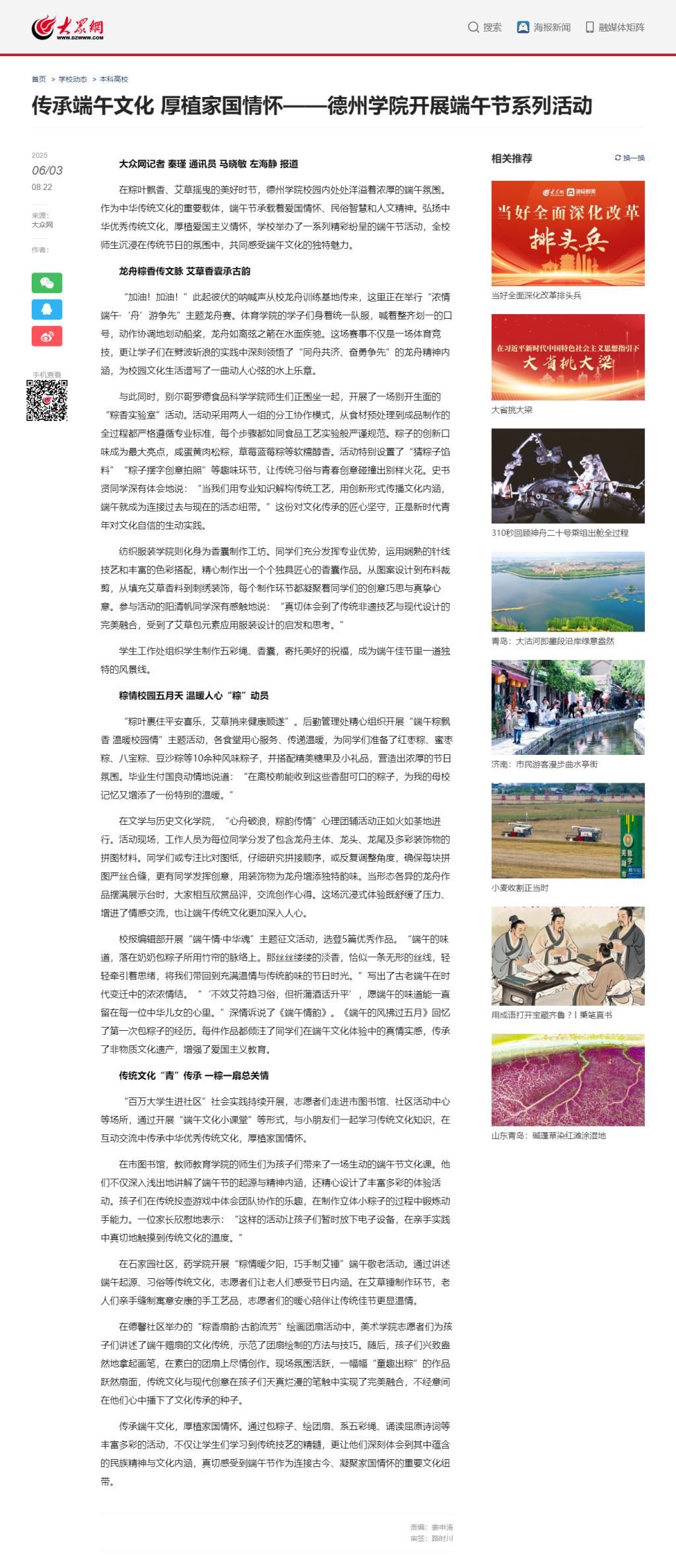 【大众网】传承端午文化 厚植家国情怀——bat365在线唯一官网登录开展端午节系列活动