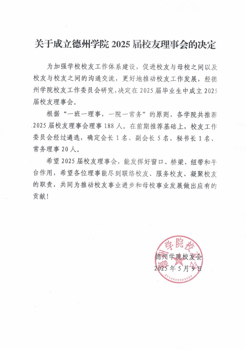 关于成立bat365在线唯一官网登录2025届校友理事会的决定